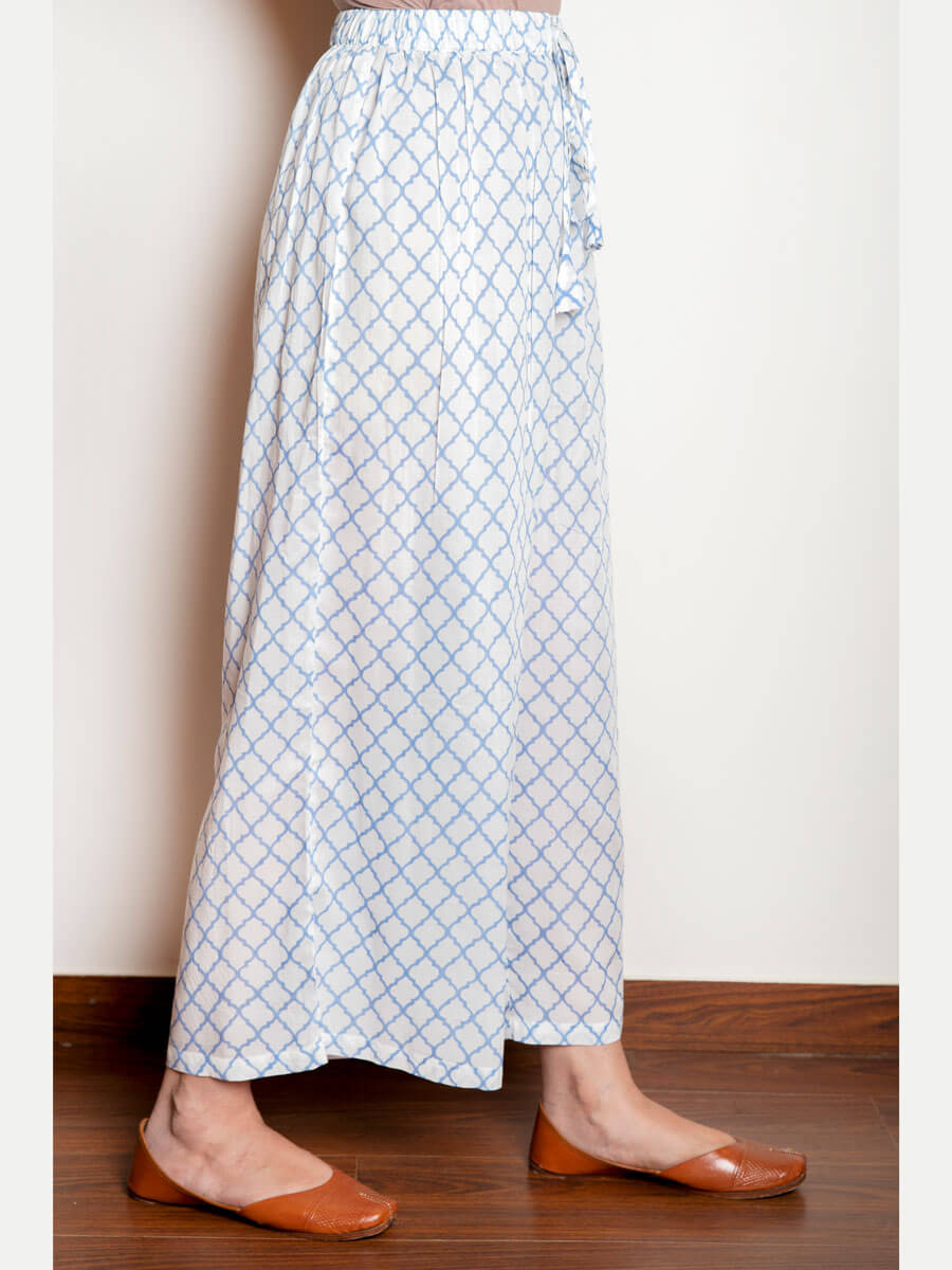A comfortable palazzo pant handcrafted in modal using traditional hand block printing; perfect for pairing with long shirts, kurtas, and kaftans. Be at your comfortable and stylish best!