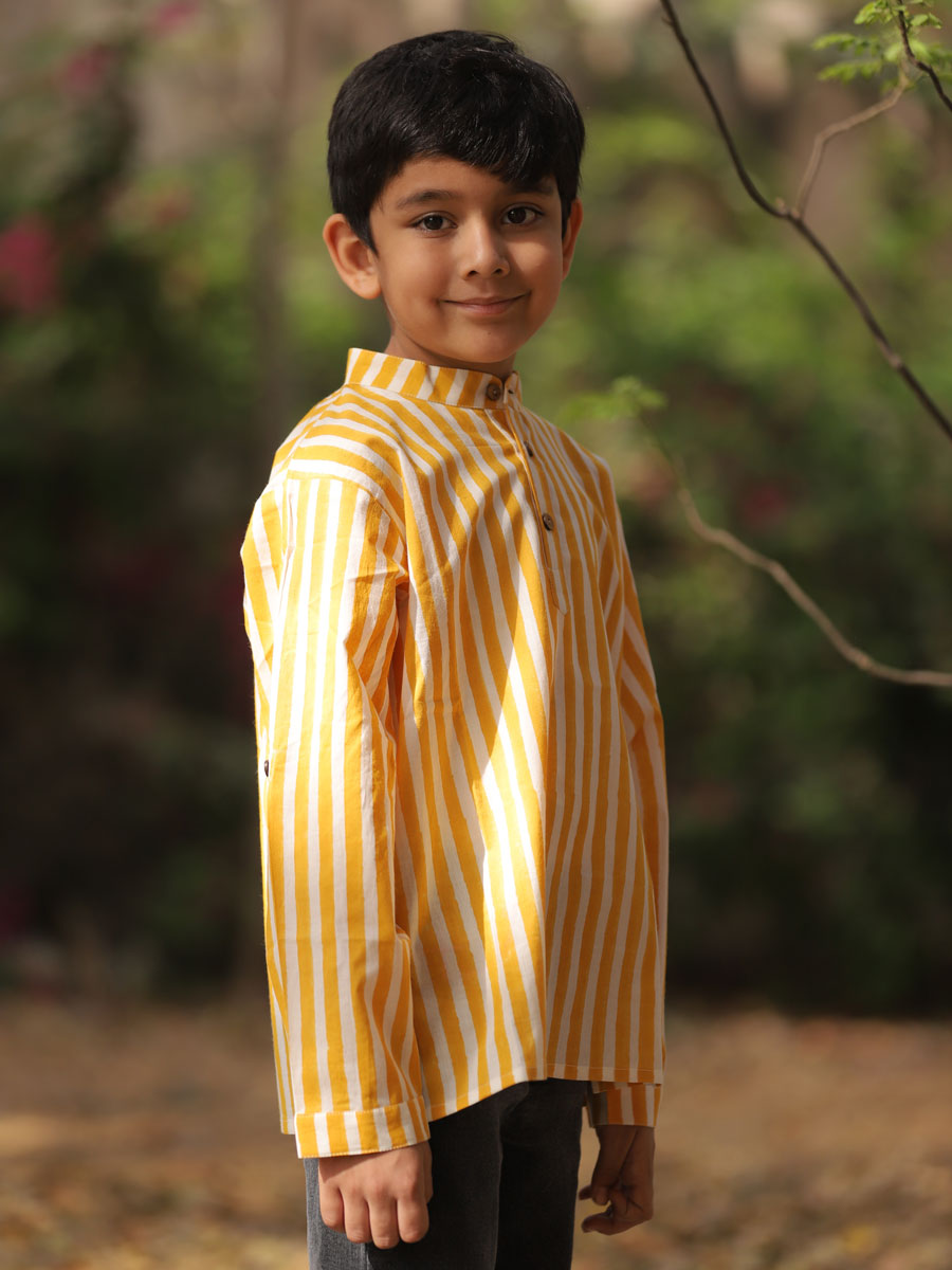 Yellow Stripes Organic Cotton Block Printed Kurta