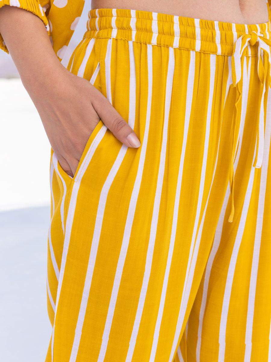 - Comfort-fit, ankle-length, yellow stripes trousers